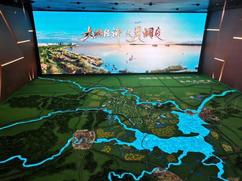 活动第一站参观洞庭博物馆。洞庭湖博物馆是记录洞庭湖历史变迁历程的“史官”,也是珍藏和传承洞庭湖区特色文化的“藏经阁”。博物馆以生态文明为理念,以“守护一江碧水 共建美丽洞庭”为主线,通过升降式投影、纱幕投影、幻影成像、数字沙盘、梦之旅沉浸式体验空间等特色项目全面生动地展示洞庭湖生态经济区的过去、现在和未来。