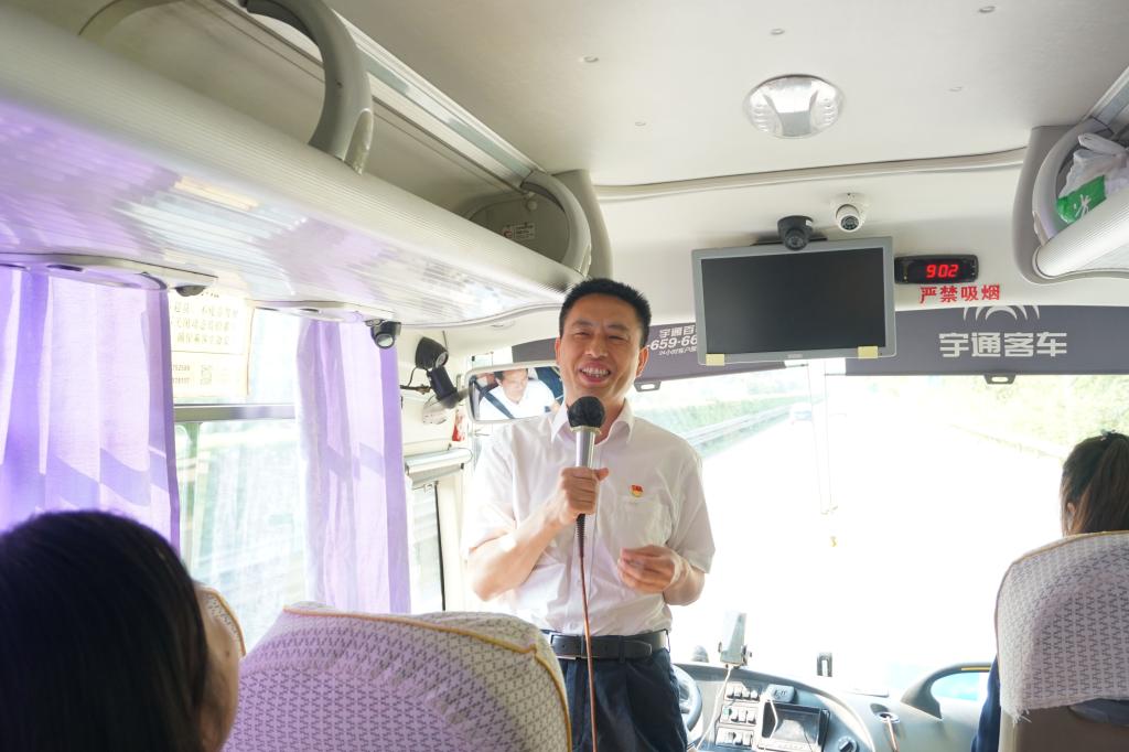 在前往杨开慧纪念馆的车上,张国云为参加主题教育的全体统一战线成员准备了一堂以《学史悟初心永远跟党走》为题的微党课。张国云生动讲述了新民主主义革命、社会主义革命和建设、改革开放和现代化建设时期的光辉历程和伟大成就,深刻阐述了中国共产党的领导是历史的和人民的选择这一结论,并希望广大统一战线成员在党的领导下,全面展现携手同心、共创伟业的良好风貌,坚定同心跟党走、奋进新征程的信心和决心。