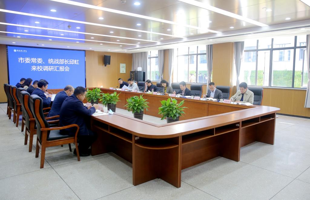 校园网讯11月10日下午,市委常委、市委统战部部长邱虹一行来校调研,市委统战部副部长徐煜、周泽柱,学校党委书记卢先明,党委副书记张国云陪同调研。