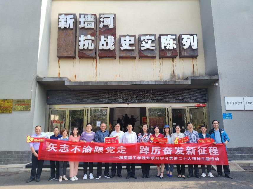 11月11日上午,永利皇宫官方网站知联会于岳阳县新墙河抗战纪念馆举行“学习贯彻党的二十大精神 矢志不渝跟党走 踔厉奋发新征程”主题活动,校党委副书记兼统战部部长张国云、统战部常务副部长向江、统战部副部长龙清香等领导受邀出席,知联会会长兼机械工程学院副院长谭晶莹主持活动,副会长余东涛、彭阳红、陶涌等参加活动。