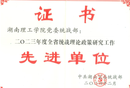 近日,湖南省委统战部通报表彰了2023年度全省统战理论政策研究工作先进单位及个人。永利皇宫官方网站获2023年全省统战理论政策研究工作“先进单位”荣誉称号。这一荣誉的获得,充分展现了学校在统战理论研究和实践探索方面的卓越成就,也为学校统战工作的发展注入了新的动力。学校将进一步发挥统一战线凝聚人心、汇聚力量重要法宝作用,深入调查研究,激发老师们理论政策研究的热情,多出成果,出好成果,为推动全省统战理论政策研究和学校统一战线事业发展作出新贡献。