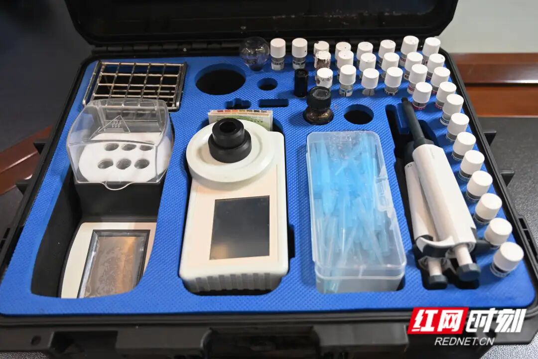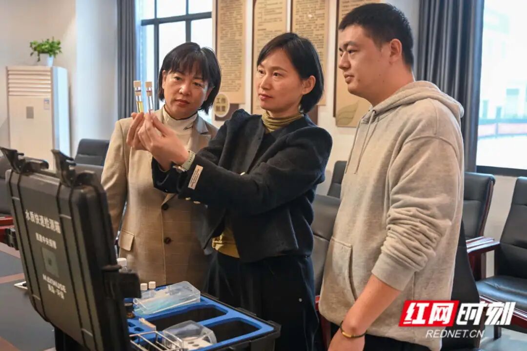 随后,她利落地将样本存入监测箱,准备稍后送往民建岳阳市委会进行专业检测。