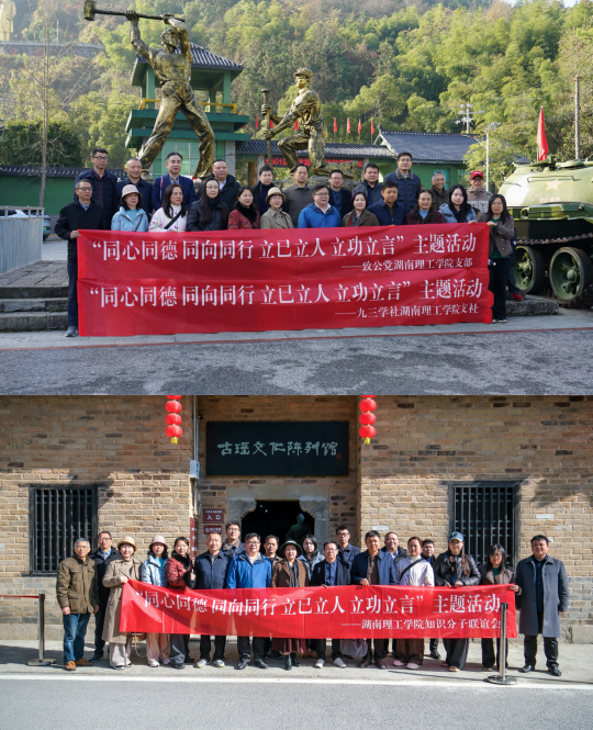 活动当日,参与教师从学校综合楼集体出发,先后赴临湘6501国防教育基地与药姑山古瑶村非物质文化遗产基地进行实地研学。围绕“四同四立”的时代内涵,大家结合所见所感展开深入交流。本次活动既是一次沉浸式的国情教育与文化体验,也是一次凝聚思想、鼓舞干劲的集体学习。大家表示,将在今后的教学科研与社会服务中,自觉践行“同心同德、同向同行”的协作精神和“立己立人、立功立言”的价值追求,为学校内涵式发展与地方经济社会进步贡献智慧与力量。