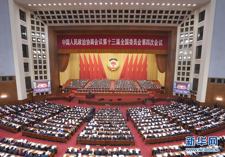 大会首先审议通过了政协第十三届全国委员会第四次会议议程。